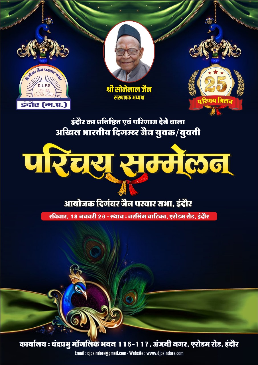 श्री दिगंबर जैन परवार सभा का गठन सन 1991 में सभा के संस्थापक अध्यक्ष श्री सोनेलाल जी जैन द्वारा अपने कुछ साथियों के साथ किया गया था परवार सभा नियमित प्रतिवर्ष प्रतिभाशाली छात्र-छात्राओं का सम्मान समारोह आयोजित करती है जिससे कि उन्हें प्रोत्साहित कर उनकी प्रतिभा को निखारा जा सके प्रतिवर्ष की भांति इस वर्ष भी रविवार दिनांक 18 जनवरी 2026 को नरसिंह वाटिका एरोड्रम रोड पर अखिल भारतीय युवक युवती परिचय सम्मेलन का आयोजन परवार सभा के द्वारा किया जा रहा है इस वर्ष ऑनलाइन रजिस्ट्रेशन के साथ-साथ ऑफलाइन रजिस्ट्रेशन का भी प्रावधान रखा गया है परवार सभा का प्रयास है कि दिगंबर जैन समाज के सभी घटक इस सम्मेलन में सम्मिलित हो जिससे समग्र दिगंबर जैन समाज के विवाह योग युवक युवती एक ही मंच से अपने भविष्य के जीवन साथी का चयन कर सके इस कार्यक्रम का ऑनलाइन प्रसारण भी किया जाएगा जिसे इंदौर और इंदौर के बाहर सभी स्थानों पर देखा जा सकता है इंदौर से बाहर के प्रत्याशी ऑनलाइन वीडियो कॉन्फ्रेंसिंग के माध्यम से अपना परिचय दे सकते हैं |